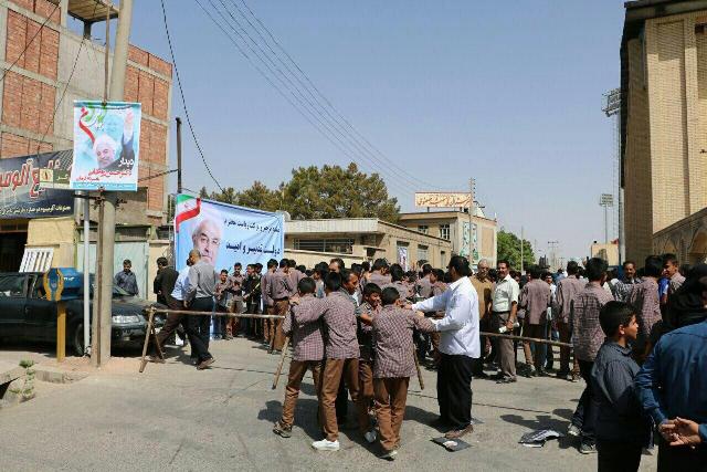 آوای فرهنگی – درحالی که وزیر آموزش و پرورش اعلام کرد: به همه مسئولان و مدارس اعلام کردهایم وارد بحث تبلیغات انتخابات نشوند ،دانشآموزانی که نزدیک امتحانات نهایی بایدسرکلاس درس می بودندامروزبه مراسم استقبال ازروحانی در کرمان آورده شدند!